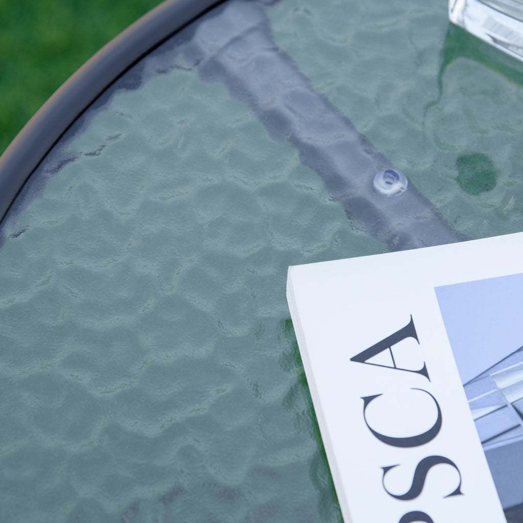 Un arredo versatile e dallo stile minimalista, questo tavolino da esterno rotondo aggiunge un tocco chic a ogni ambiente. Si abbina facilmente al tuo arredamento da giardino ma puoi sceglierlo anche per il tuo salotto come tavolino da caffè. Il ripiano in vetro con design a onde regala un aspetto elegante ed è facile da pulire con un panno umido. Rendi i tuoi spazi aperti più originali con il nostro tavolino da giardino!