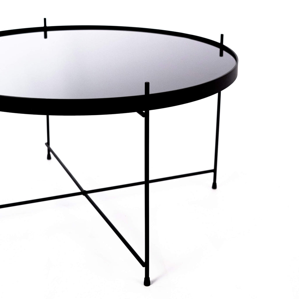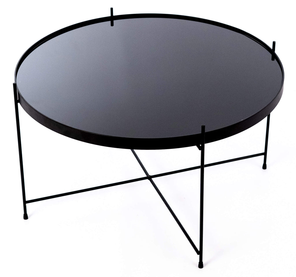 Tavolino da Giardino Ø70x40 cm in Metallo Top in Vetro Nero