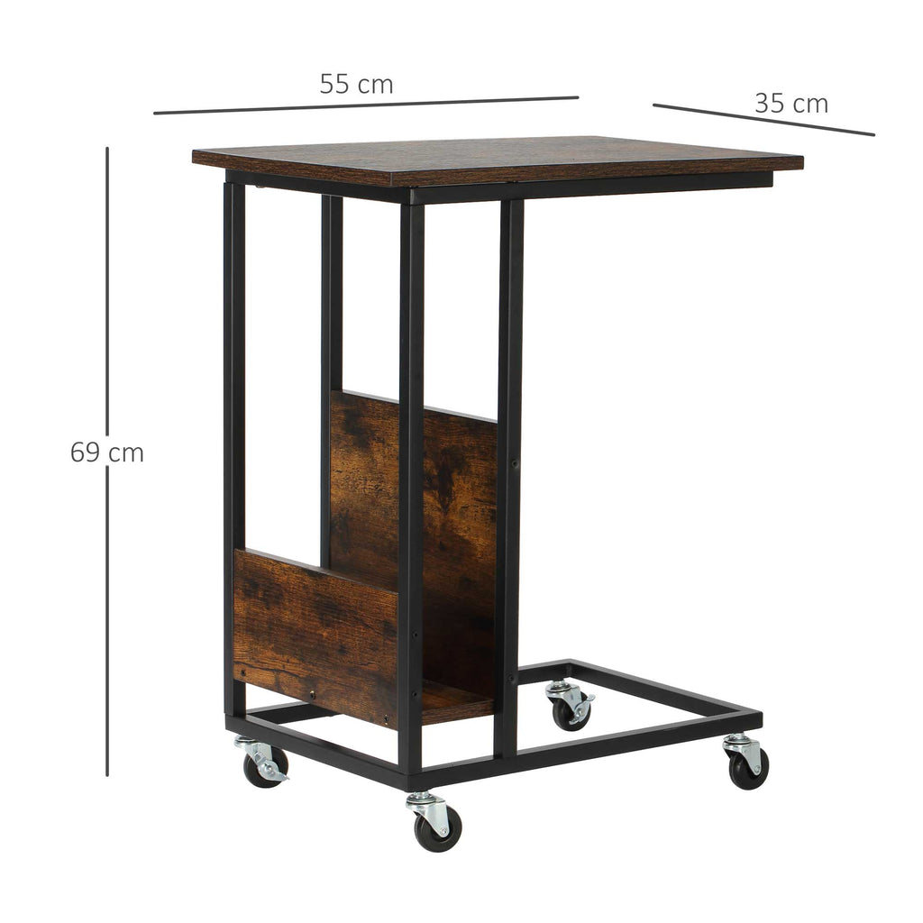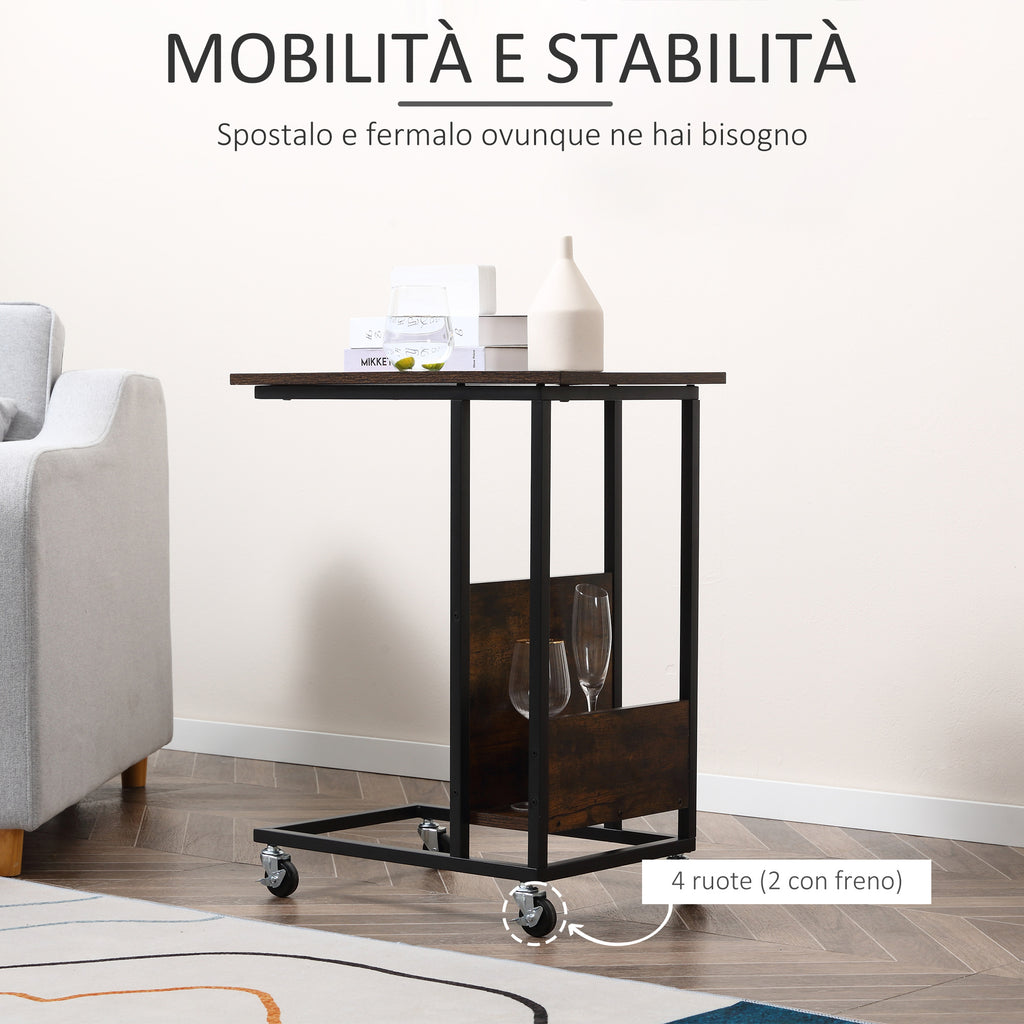 Tavolino da Salotto 55x35x69 cm con Ruote in Metallo e Legno Marrone