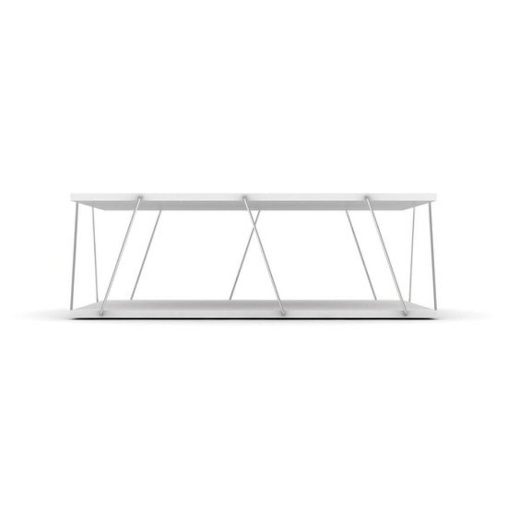 Tavolino da salotto Tars bianco. Stile, funzionalità, modernità e robustezza, sono le caratteristiche principali del tavolino da salotto Tars. Il doppio ripiano garantisce di avere due ampie superfici dove riporre libri, tazze, vasi e tutti gli oggetti che vuoi. Di sicura eleganza è la struttura in acciaio che supporta il piano superiore.