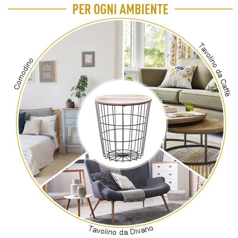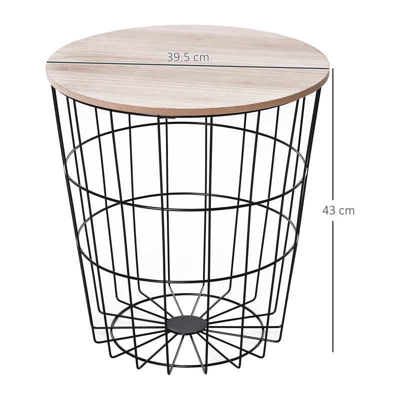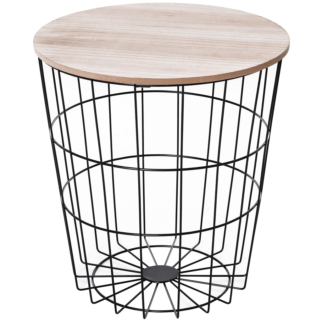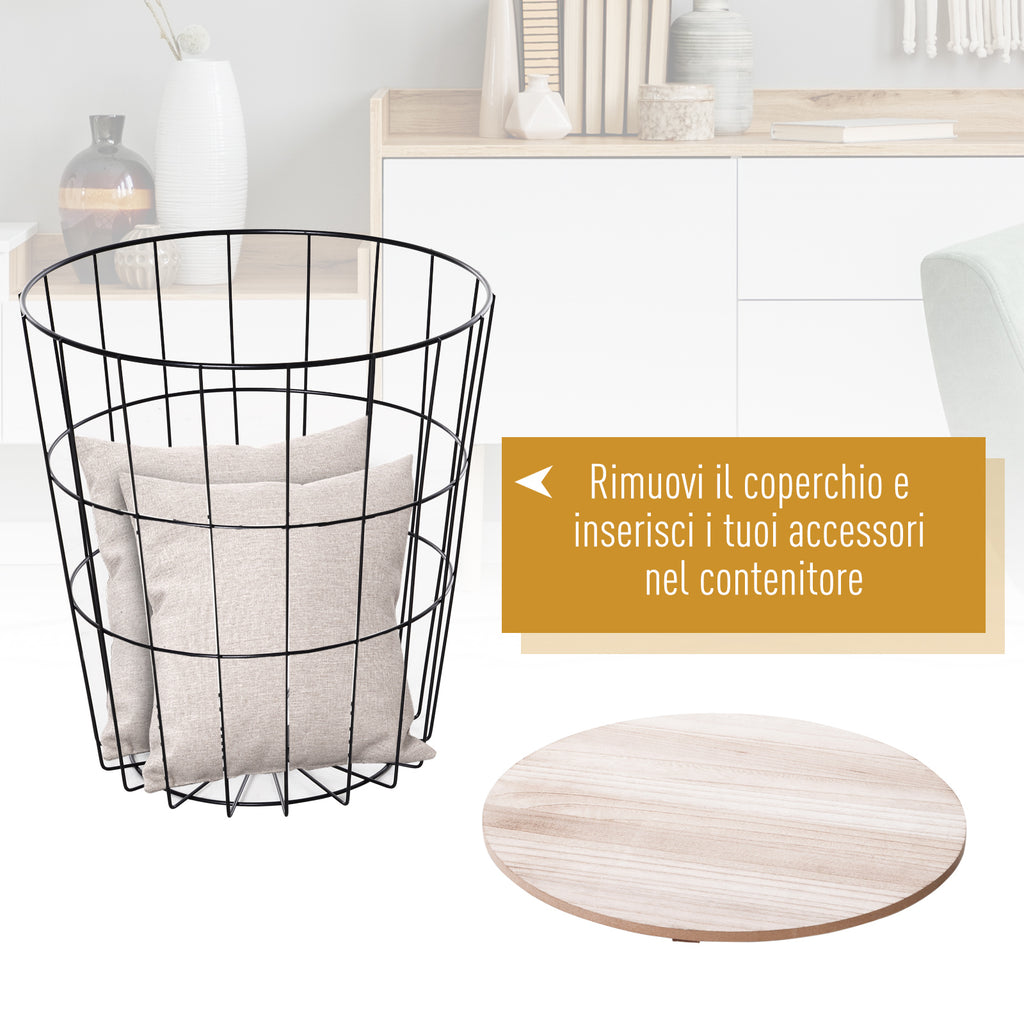 Tavolino da Soggiorno Contenitore in Metallo Ø39,5x43 cm Nero e Legno