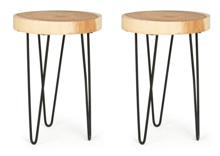 Set 2 Tavolini da Soggiorno Ø35x48 cm in Legno Tuala