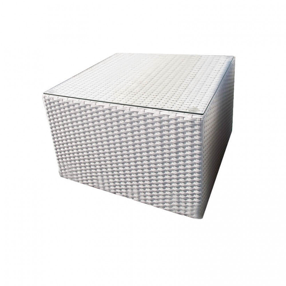 Tavolino Dallas con Vetro 60x60x42,5 h cm in Wicker Bianco