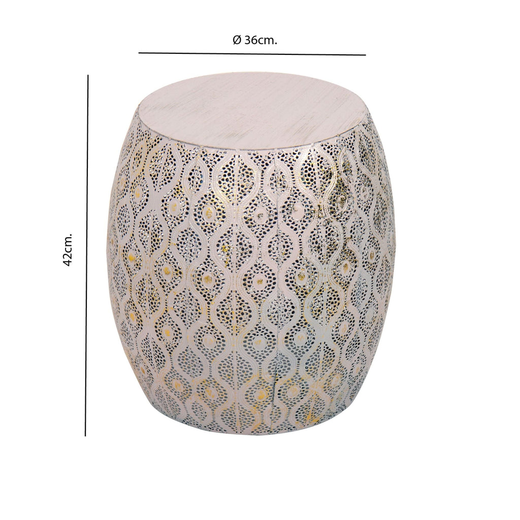 Grazioso, pratico e particolare, il tavolino Lesha è perfetto accanto a un divano, in un living, ma anche accanto al letto. Realizzato in metallo, si presenta come un cilindro più ampio al centro, il perimetro del tavolino è intarsiato da disegni dal sapore orientale. Lesha è reso particolare anche dal colore, un rosa tenue con sfumature dorate.