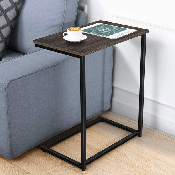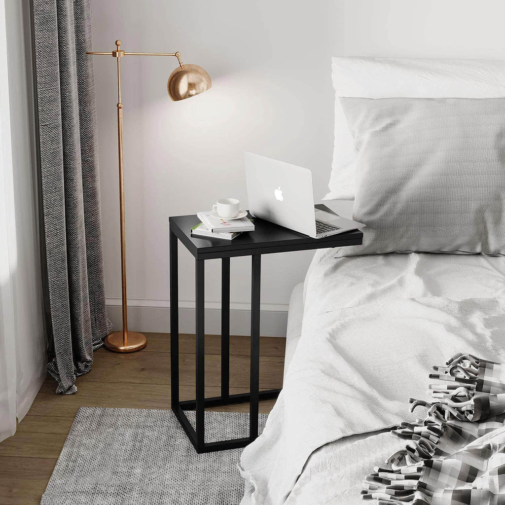 Tavolino da Divano o Letto con struttura in metallo verniciato nero e piano in paulownia tinto color noce.