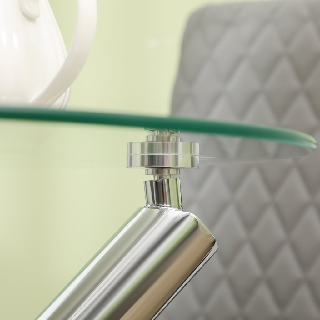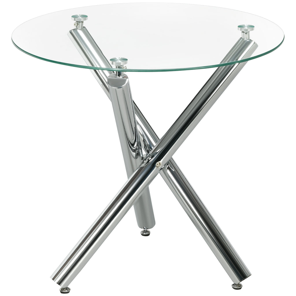 Tavolino Ø80x74 cm con Piano in vetro Gambe in Acciaio