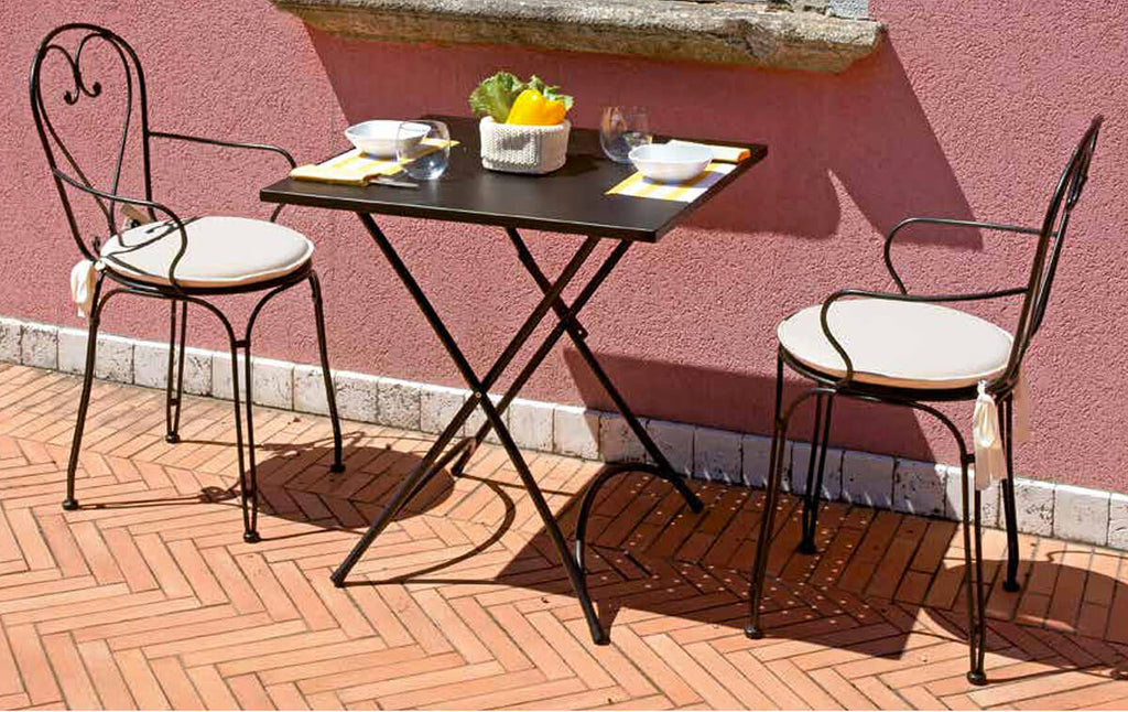 Tavolino Quadrato Pieghevole 70x70 cm in Ferro Vorghini Stresa Nero