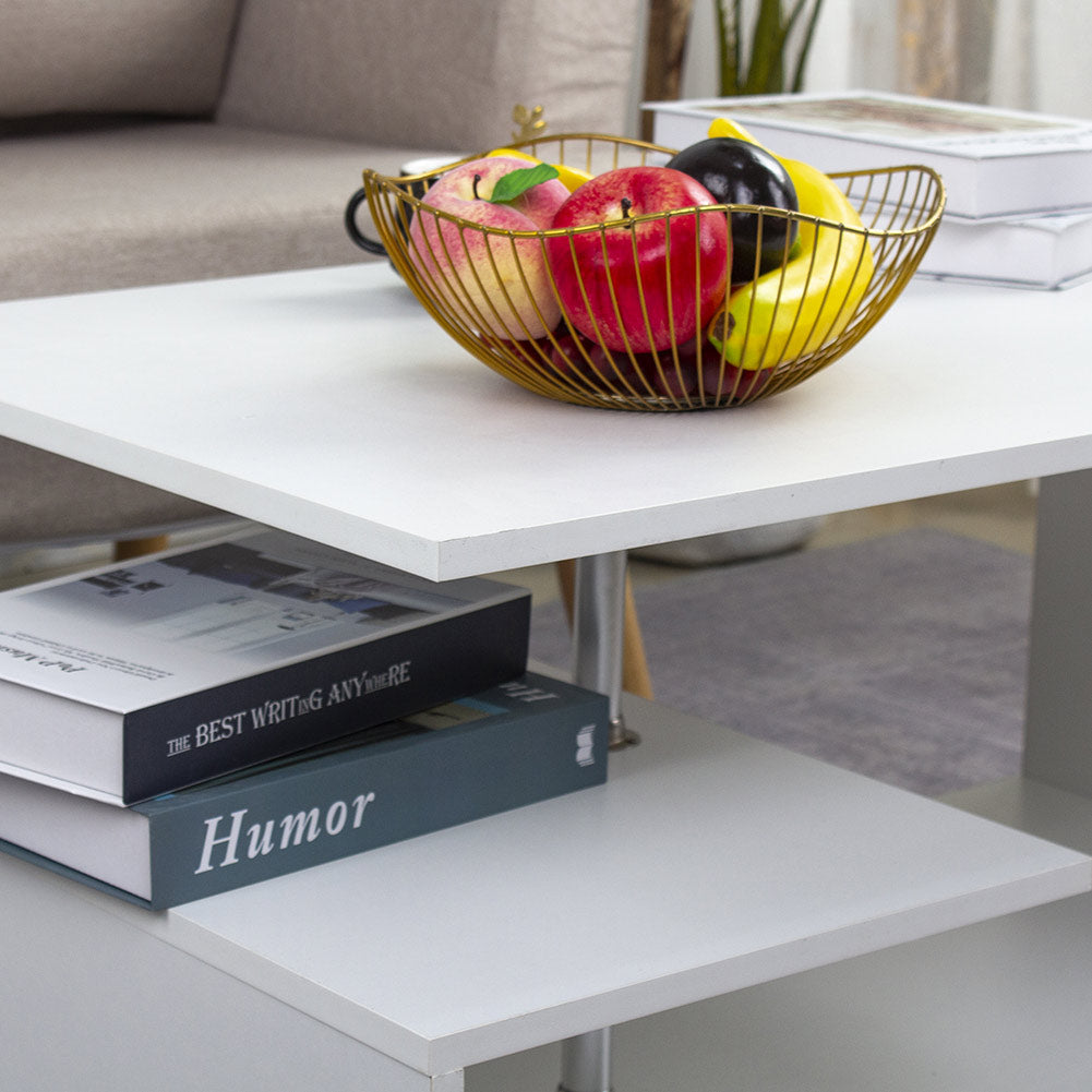 Tavolino Salotto Caffe Rettangolare Design Moderno Legno MDF 3 Ripiani Bianco