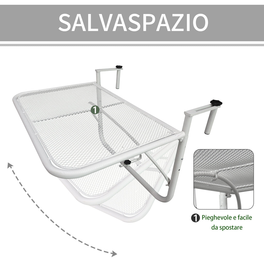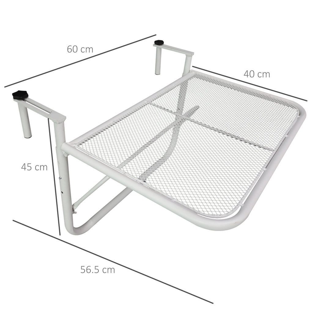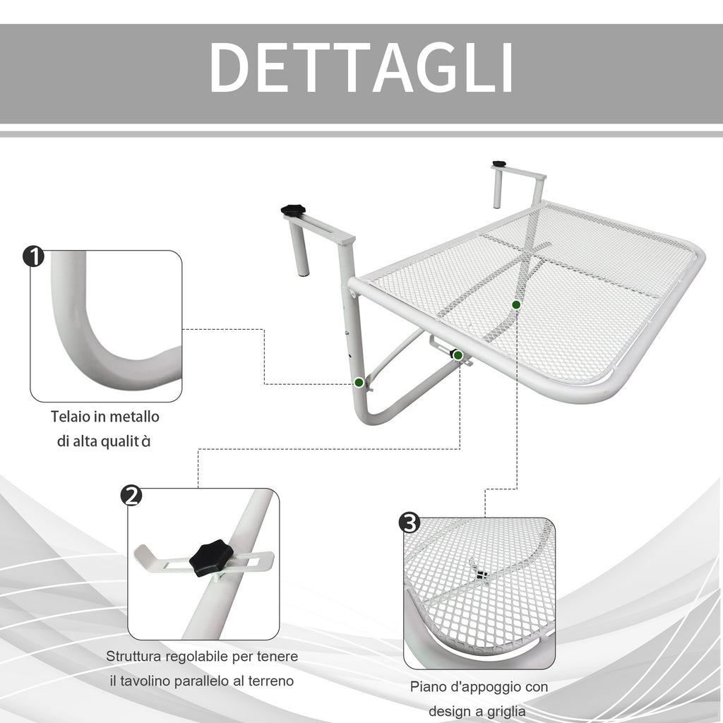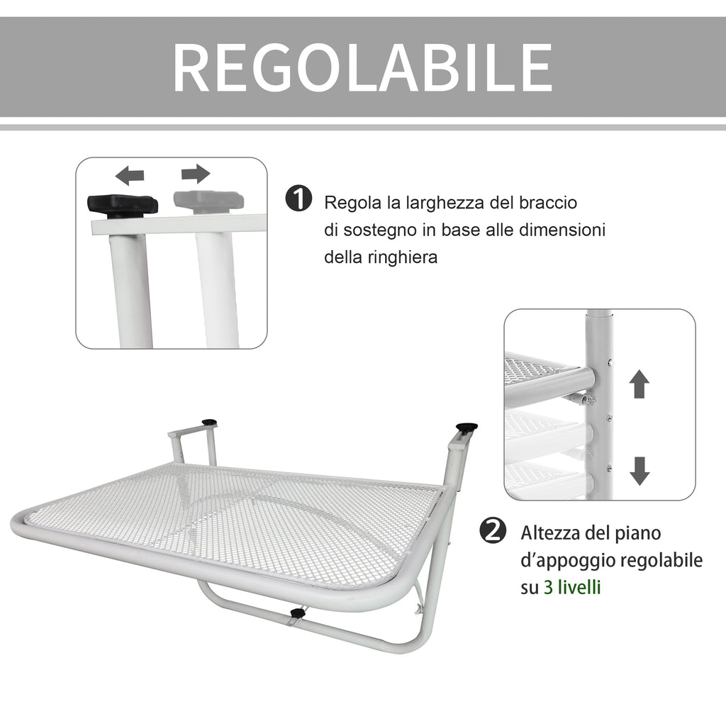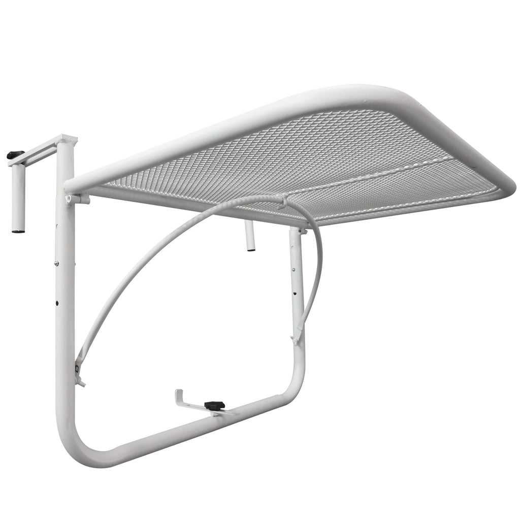 Tavolino Sospeso da Balcone 60x56.5x45 cm Regolabile in Ferro Bianco