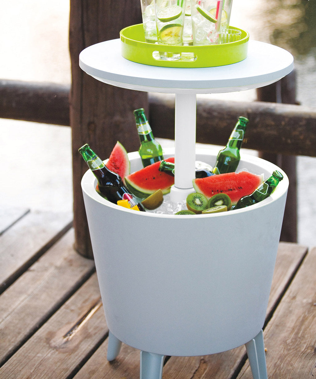 Tavolino Termico Piano Rialzabile Ø49,5 cm in Resina Keter Cool Bar Bianco