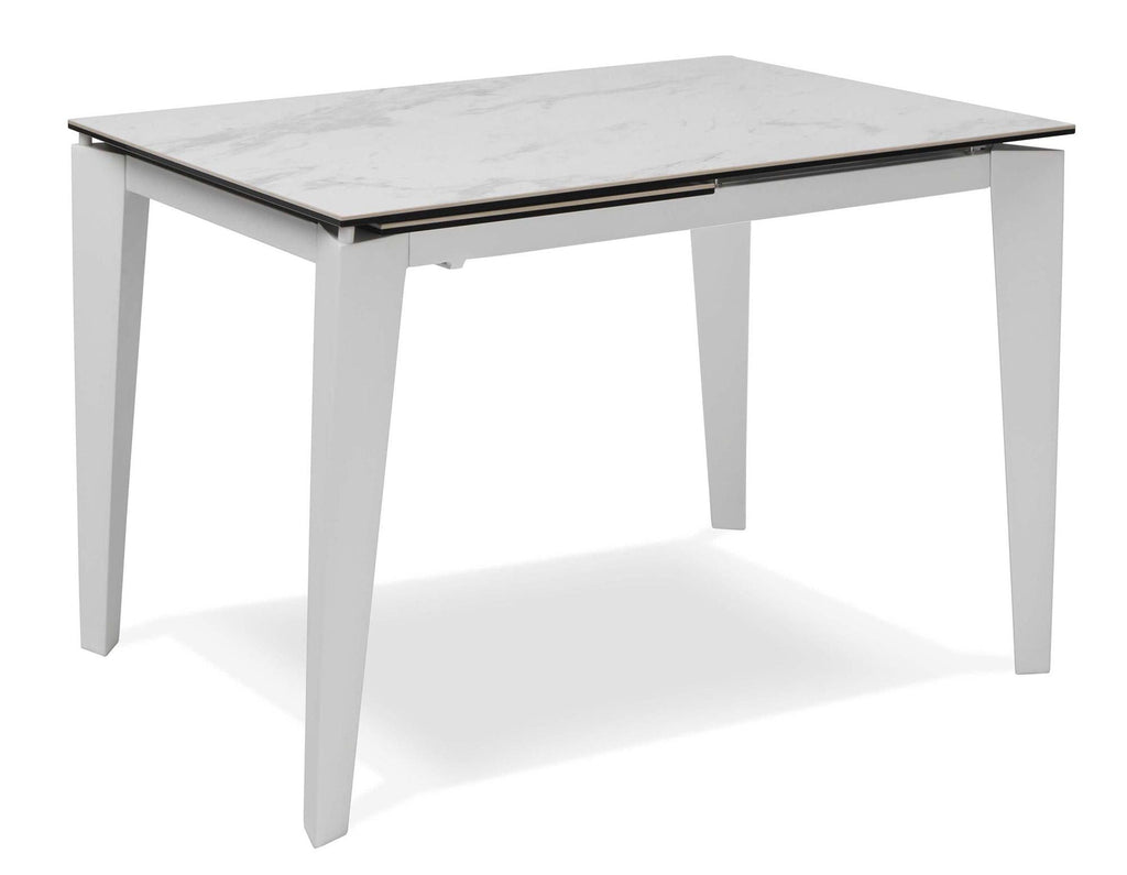 Tavolo Allungabile 120/170x80x76 cm in Metallo con Top Ceramica su Vetro Marmo Bianco