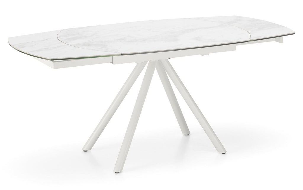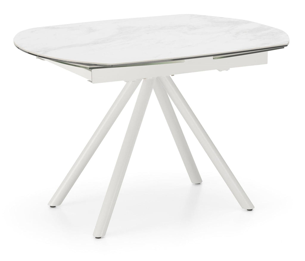 Tavolo Allungabile 120/180x90x76 cm in Metallo con Top Ceramica su Vetro Marmo Bianco