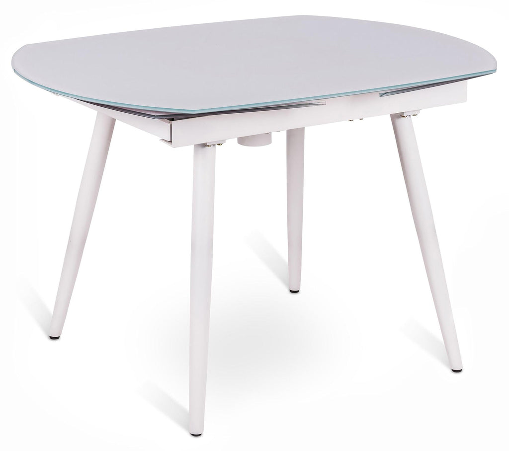 Tavolo Allungabile 120/180x90x76 cm in Metallo con Top in Vetro Bianco