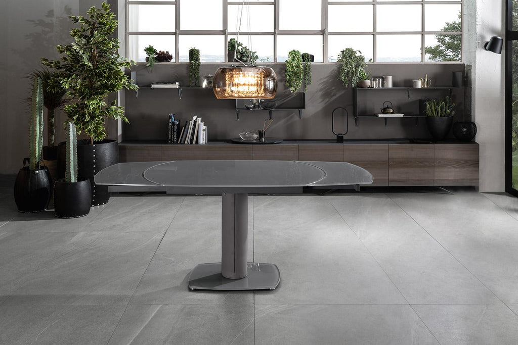 Tavolo Allungabile 120/180x90x76 cm in Similpelle con Top in Vetro Grigio