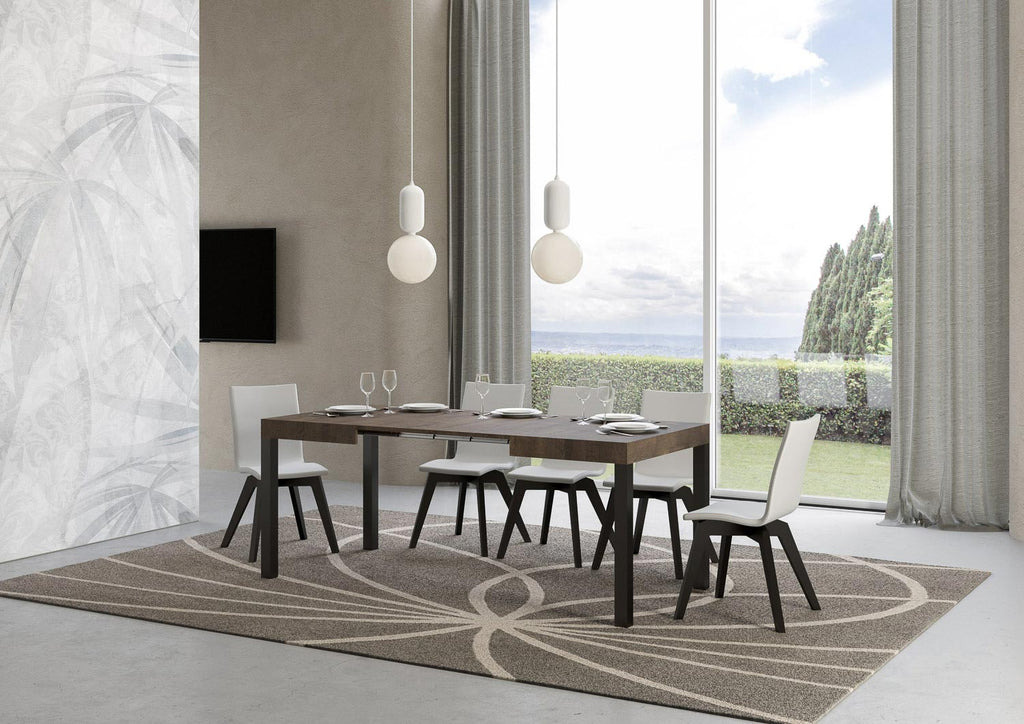 Il tavolo allungabile Everyday da 120 cm è un elemento d'arredo versatile e moderno, adatto a qualsiasi stile di arredamento. Può essere utilizzato come tavolo da pranzo o come elemento d'arredo per il soggiorno, permettendo di accogliere gli ospiti con stile. La sua capacità allungabile fino a 204 cm consente di ospitare fino a 8 persone. Realizzato con materiali di alta qualità, come pannelli in nobilitato e gambe in ferro, il tavolo è stabile e robusto anche quando è completamente allungato grazie al sistema di estensione con guide telescopiche in alluminio. Le allunghe possono essere riposte all'interno della struttura del tavolo quando non sono in uso. Questo prodotto è 100% made in Italy e le sue dimensioni sono: 120 x 80 x 77 cm (chiuso), 162 cm con 1 allunga e 204 cm con 2 allunghe.