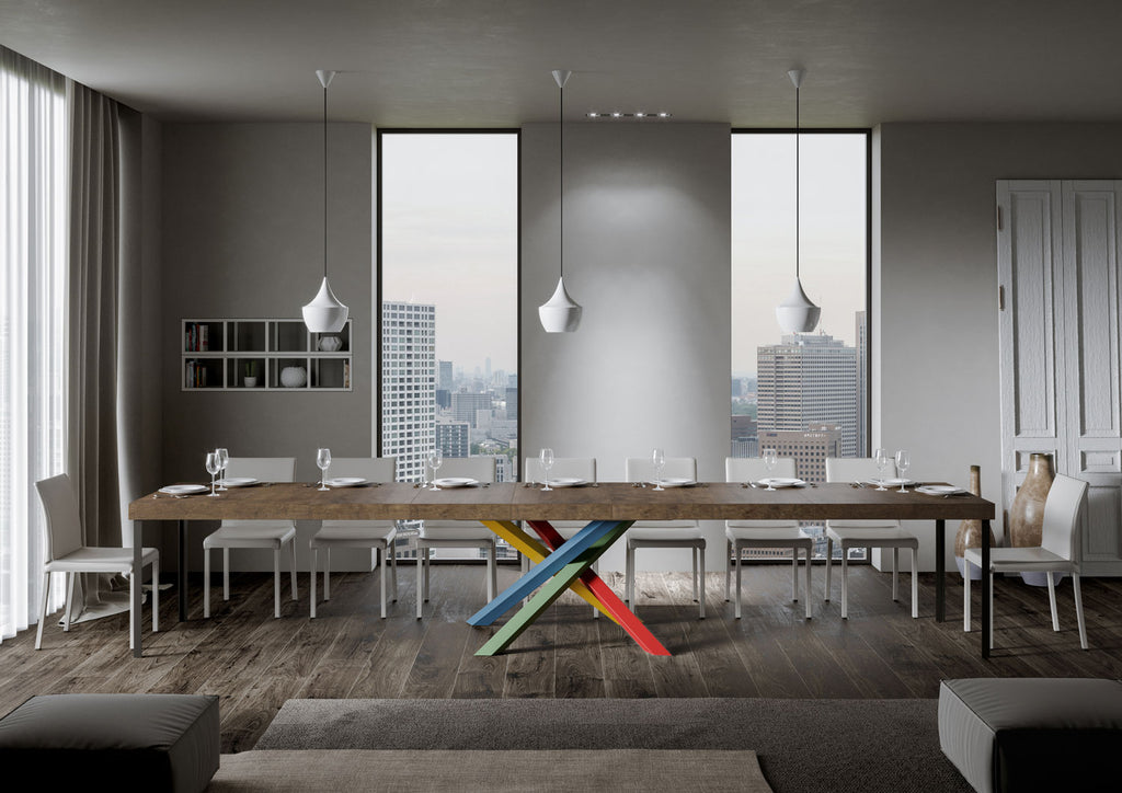 Tavolo Allungabile 120/380x90 cm Volantis Premium Noce Gambe Multicolore 4/B