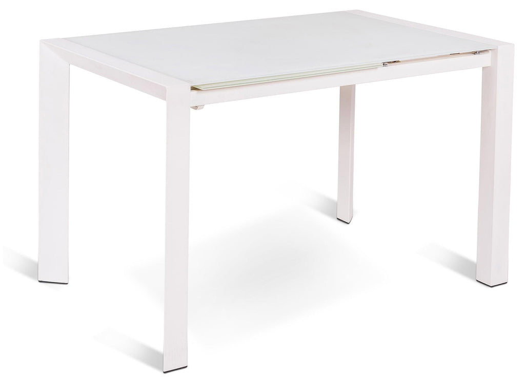 Tavolo Allungabile 122/182x80x76 cm in Metallo con Top in Vetro Bianco