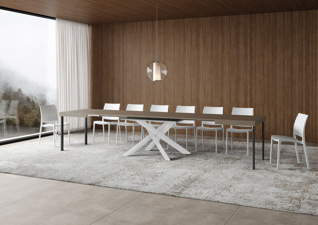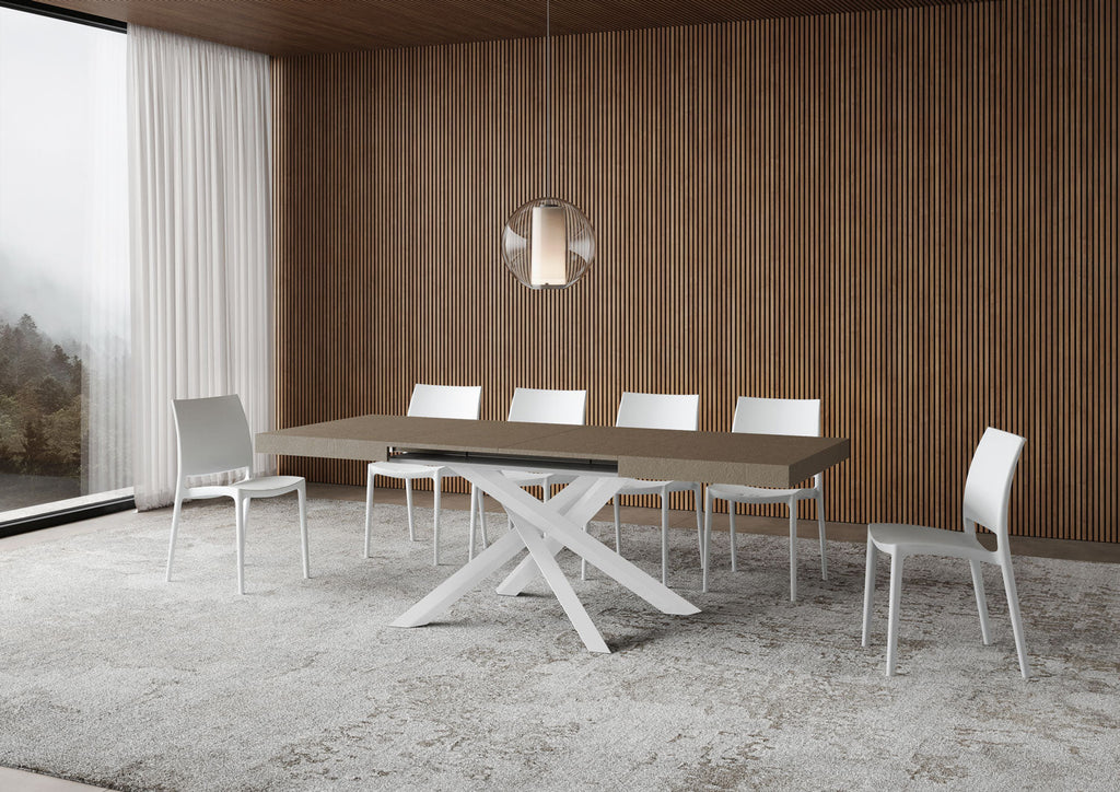 Tavolo Allungabile 140-400x90x77 cm Volantis Tortora Telaio Bianco