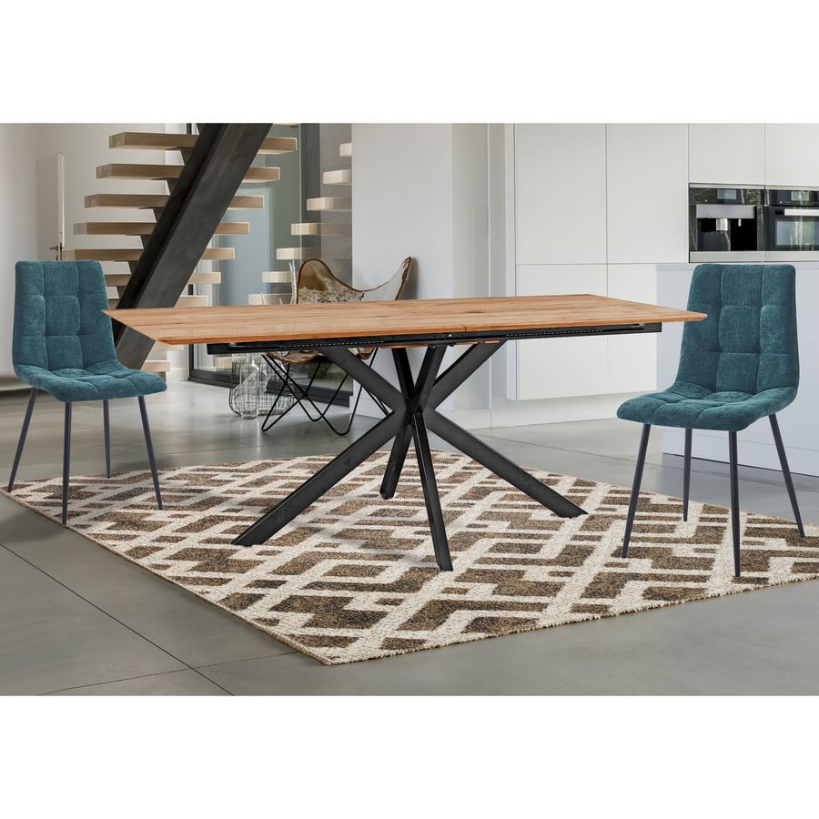 Tavolo estensibile 160 - 200 cm con top effetto rovere Il tavolo da pranzo allungabile Exten, ideale per chi cerca un complemento d'arredo funzionale e di design. Realizzato in legno MDF con effetto rovere, dallo spessore di 18mm, questo tavolo ha dimensioni standard di 160x90x76cm, ma può essere allungato fino a 200cm per ospitare comodamente più commensali. Le gambe del tavolo sono dotate di una struttura tubolare quadrata nera, che garantisce una perfetta stabilità e resistenza nel tempo. Grazie alla sua eleganza e versatilità, il tavolo estensibile Exten si adatta perfettamente a qualsiasi ambiente, dalla cucina al soggiorno, regalando un tocco di stile e raffinatezza all'intera casa.