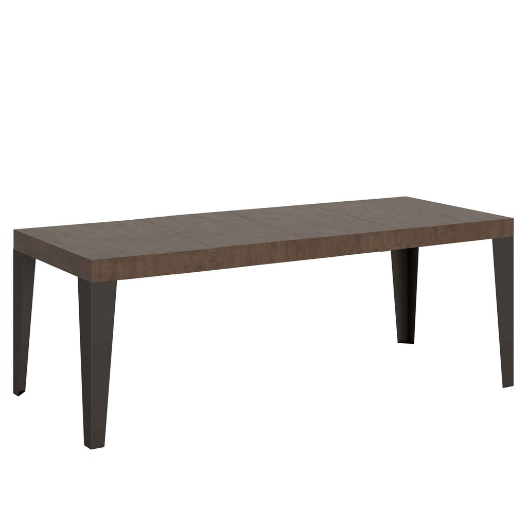 Tavolo allungabile Flame Premium da 160 cm, dal design lineare, semplice ed essenziale, si adatta a qualsiasi stile di arredamento e si rivela la scelta ideale sia come tavolo da pranzo che come elemento d'arredo per il soggiorno, dove poter accogliere i propri ospiti con stile.Il tavolo allungabile Flame Premium è in grado di estendersi progressivamente, capace di ospitare 12 persone.Realizzato con pannelli in nobilitato, gambe in ferro, piano e allunghe con lavorazione a Folding.Il sistema di estensione con guide telescopiche in alluminio rende il tavolo stabile e robusto anche se totalmente allungato, senza bisogno di ulteriori sostegni.Quando non utilizzate, le allunghe non trovano collocamento all’interno della struttura del tavolo e vanno quindi riposte altrove.Prodotto ityhomeMade in Italy