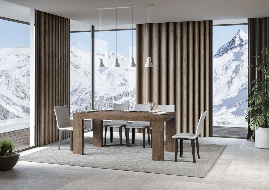 Tavolo Roxell 160 Allungabile. Tavolo Allungabile Roxell, un Tavolo rettangolare da pranzo o da soggiorno dalla linea geometrica essenziale e decisa, che gli permette di abbinarsi perfettamente a qualunque tipo di ambiente e stile, dai più moderni ai più classici e tradizionali. La versatilità tipica del Tavolo Roxell non è riscontrabile solamente nello stile, ma anche nella sua multifunzionalità che ne permette una infinità di utilizzi. Il Tavolo è compatto quando chiuso, il Tavolo rettangolare Roxell si inserisce perfettamente in qualunque spazio, ma all'occorrenza si può estendere fino ad arrivare a 420 cm di lunghezza. Il Tavolo è infatti dotato di un pratico e innovativo sistema a 5 allunghe (da 52 cm ciascuna) su guide in alluminio che gli permette di estendersi fino a 420 cm, dandovi la possibilità di poter ospitare fino a 18 persone in estrema comodità in estrema comodità e senza alcun tipo di problema. Questa possibilità rende il Tavolo Roxell ideale sia per un uso quotidiano di tutti i giorni, che per situazioni di maggiore compagnia in cui avrete a casa parenti e amici. Le allunghe possono essere inserite progressivamente, consentendo configurazioni di lunghezza intermedie, così potrete scegliere se utilizzarlo con una, due, tre, quattro o cinque allunghe in base alle vostre esigenze di spazio. Quando non utilizzate, le allunghe 2 vanno riposte all'interno della struttura del Tavolo, mentre le altre 3 vanno riposte a parte. Dotato di un pratico sistema di supporto centrale a 2 appoggiaterra, che consente al Tavolo di rimanere stabile e affidabile anche quando aperto alla massima estensione. Interamente realizzato in microparticelle di legno disponibile in diverse finiture,le allunghe sono nella stessa finitura del piano. Realizzata interamente in Italia mediante l'utilizzo di materiali 100% italiani.