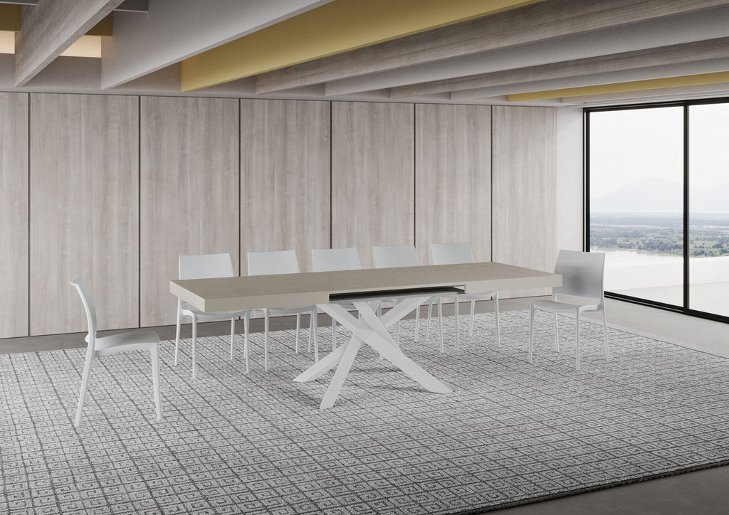 Tavolo Allungabile 160-420x90x77 cm Volantis Cashmere Telaio Bianco