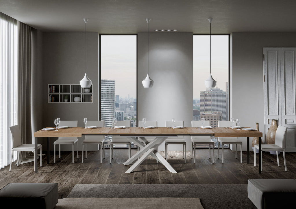 Tavolo Allungabile 160-420x90x77 cm Volantis Quercia Natura Telaio Bianco