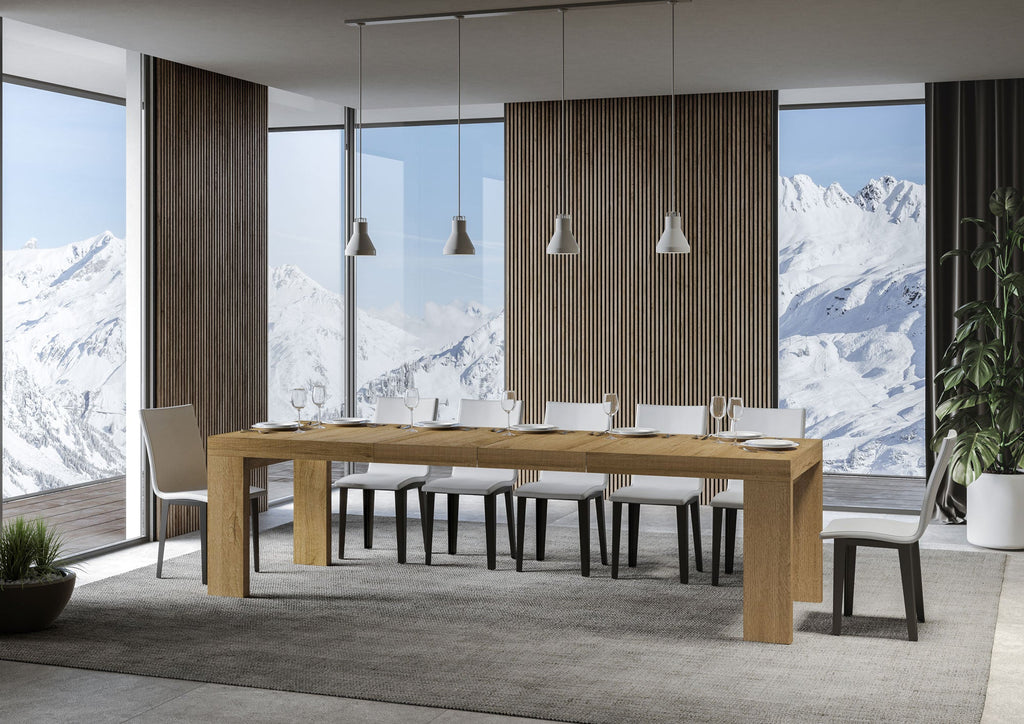 Tavolo allungabile Roxell Premium da 200 cm, dal design geometrico essenziale, si adatta a qualsiasi stile di arredamento e si rivela la scelta ideale sia come tavolo da pranzo che come elemento d'arredo per il soggiorno, dove poter accogliere i propri ospiti con stile. Il tavolo allungabile Roxell Premium è in grado di estendersi progressivamente fino a 460 cm capace di ospitare 18 persone.