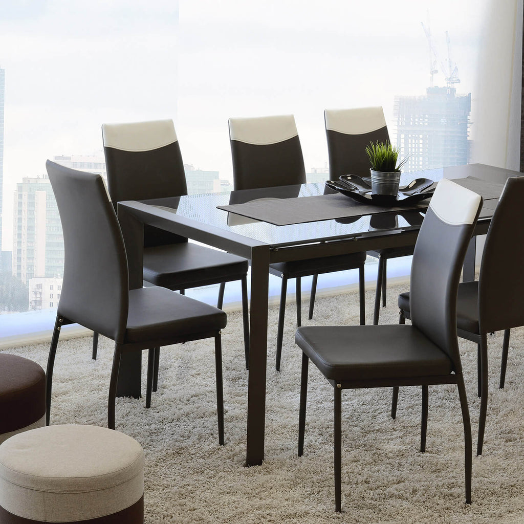 Tavolo Allungabile 75,5x80x123/183 cm in Metallo Piano in Vetro Temperato Seller Grigio