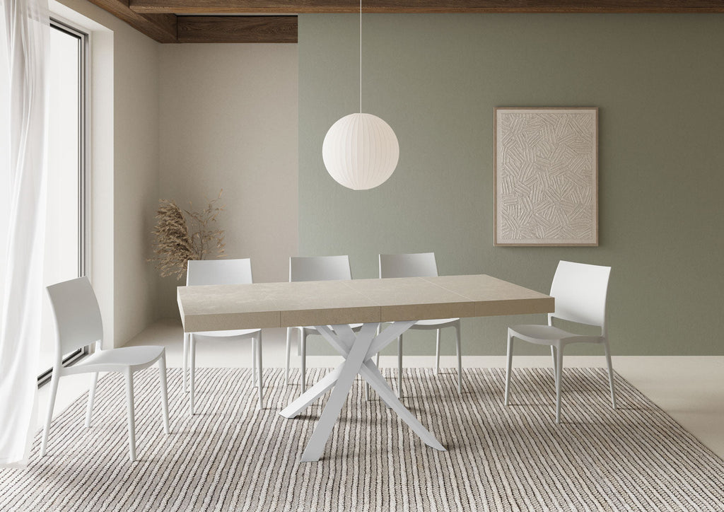 Tavolo Allungabile 90-194x90x76 cm Clerk Premium Cashmere Gambe Bianche