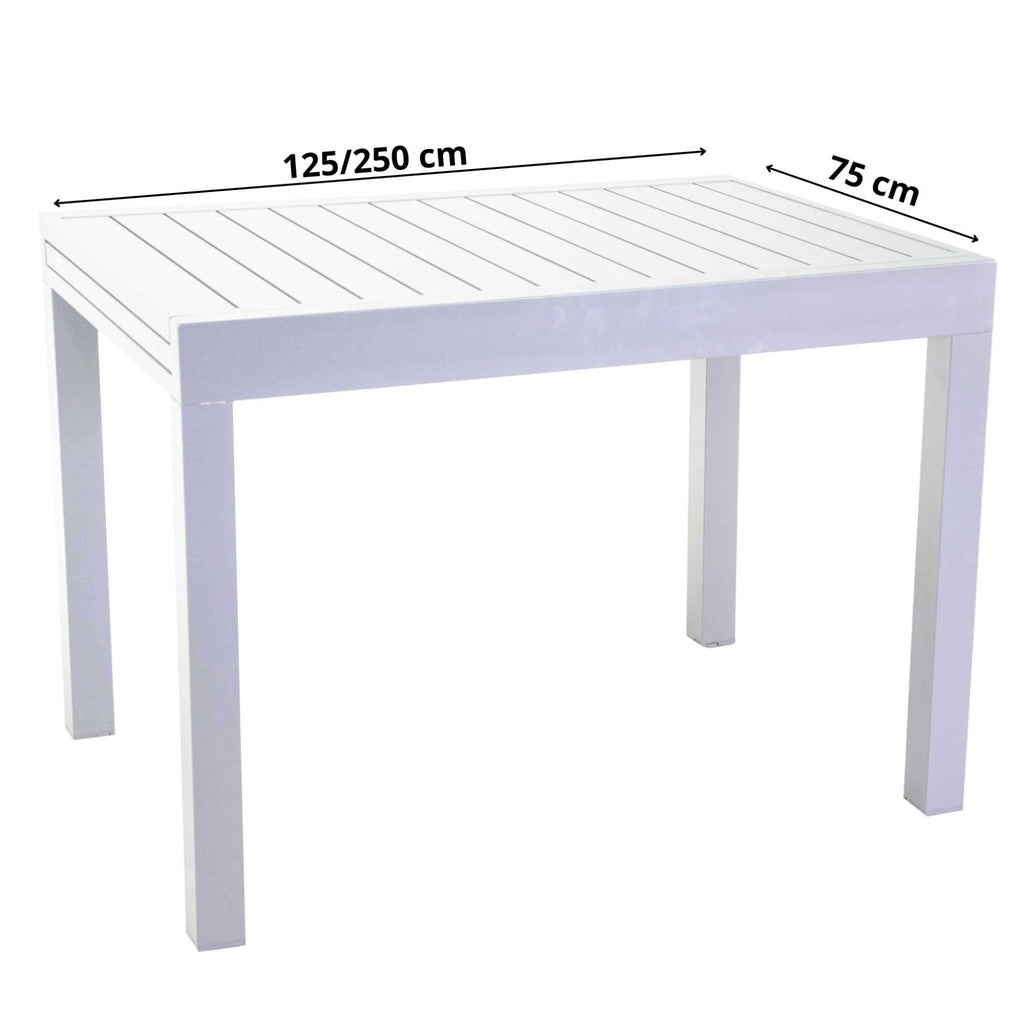 Tavolo Allungabile da Giardino 125/250x75xh75 cm in Alluminio Cleveland Bianco