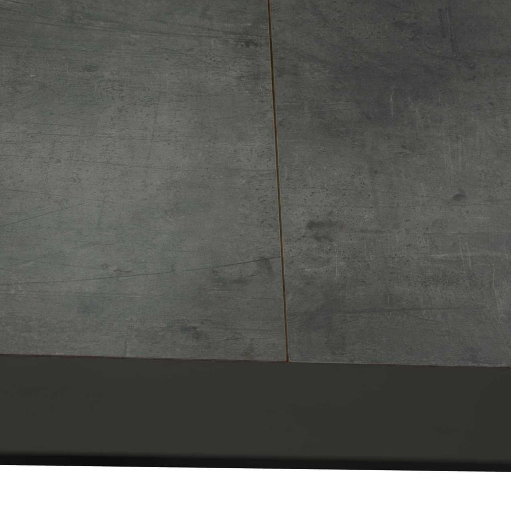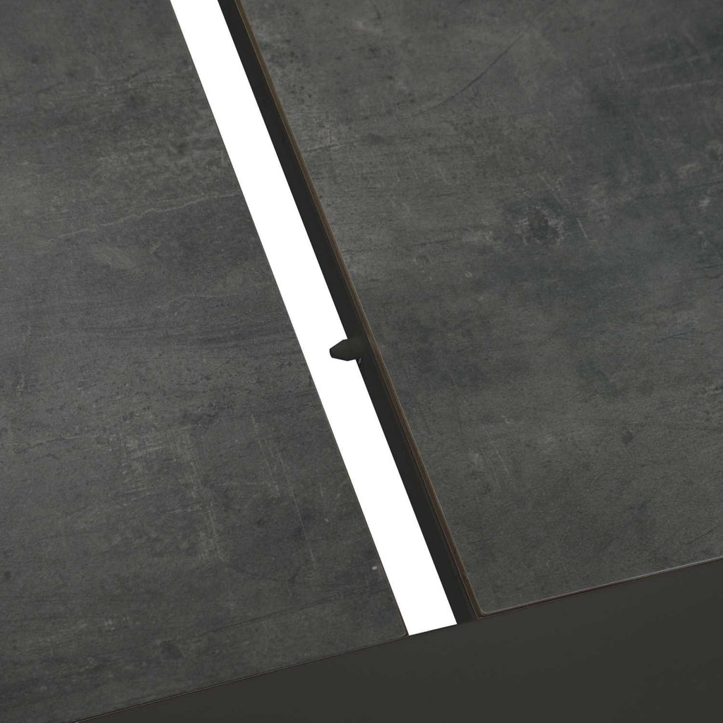 Il tavolo ha dimensioni complessive di 300/200x104xh76 cm e presenta una struttura in alluminio verniciato a polvere di colore antracite. Il top del tavolo è realizzato in HPL spessore 6mm, composto da 9 pannelli. Il tubo in alluminio che costituisce la struttura ha dimensioni di 70x70x1,5 mm. Il tavolo è smontabile e presenta un'apertura centrale a scorrimento per una maggiore praticità nell'utilizzo.