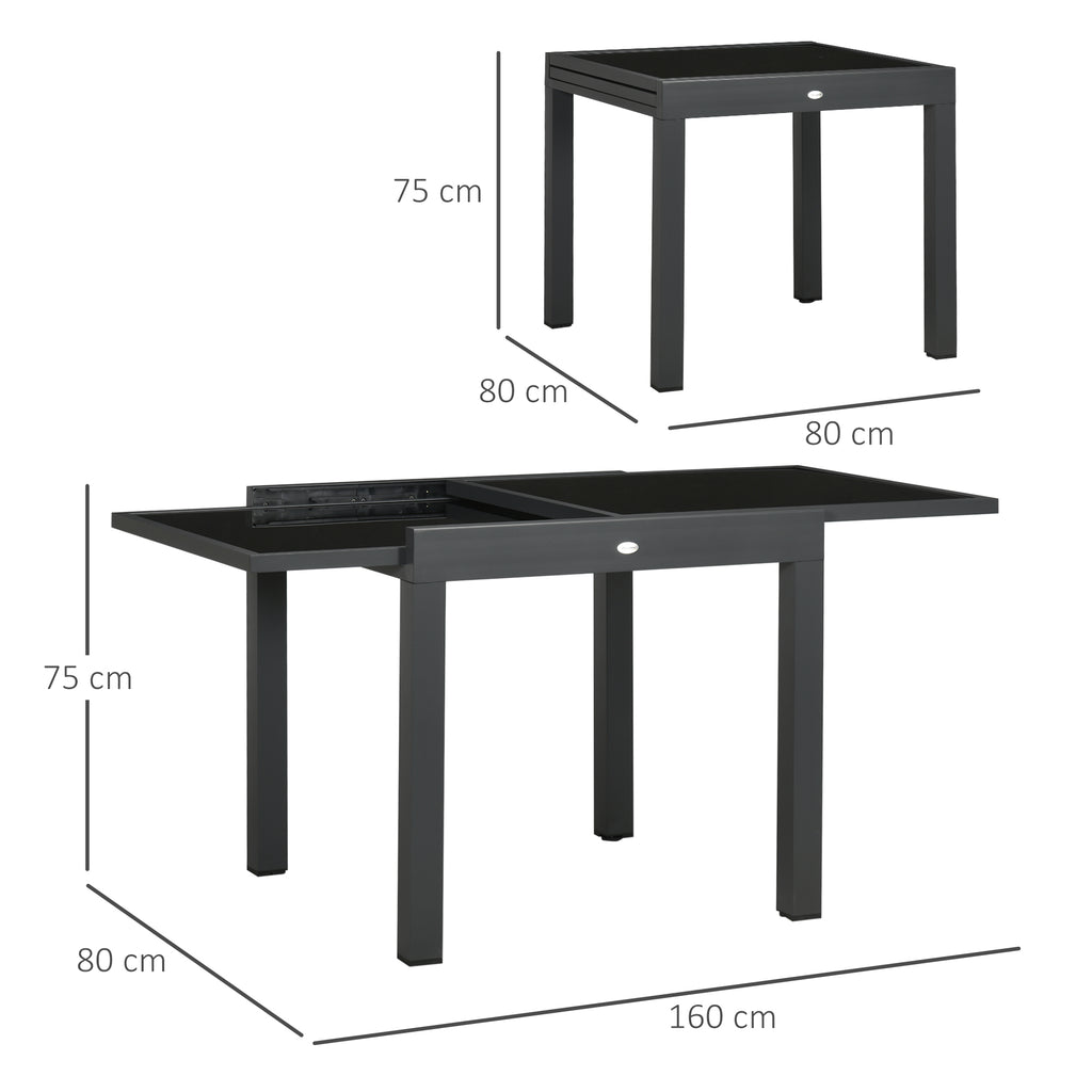 Tavolo Allungabile da Giardino 80-160x80x75 cm con Piano in Vetro e Alluminio Nero