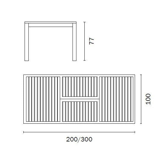 - Dimensioni (LxAxP): 200/300 x 76 x 100 cm