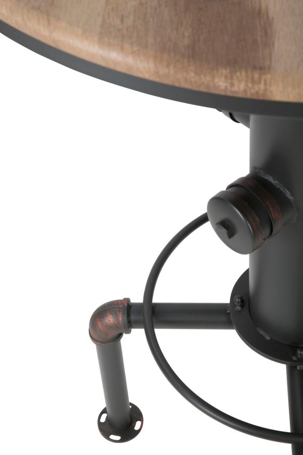 Tavolo bar rotondo in metallo e mdf. Splendidi complementi industrial che si inseriscono facilmente nel proprio living o in un locale commerciale. Il legno ed il ferro si esprimono nella loro forma più moderna.