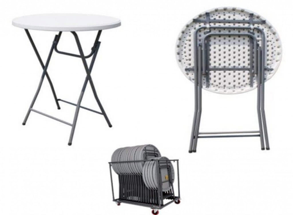 Tavolo Catering Pieghevole Ø60x110 h cm in Acciaio Grigio