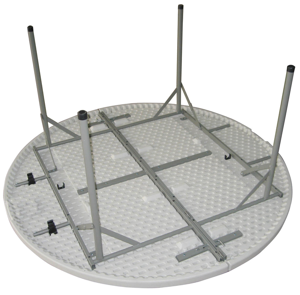 Tavolo circolare pieghevole in polietilene e acciaio verniciato. Ideale per l'organizzazione di catering e buffet per ogni evento privato o aziendale quali: Matrimoni, convegni, ricevimenti e feste in generale.