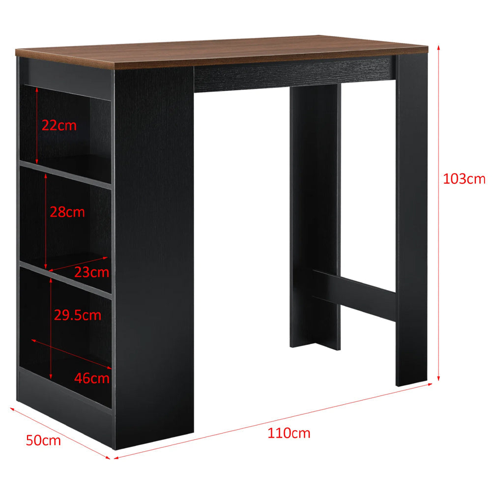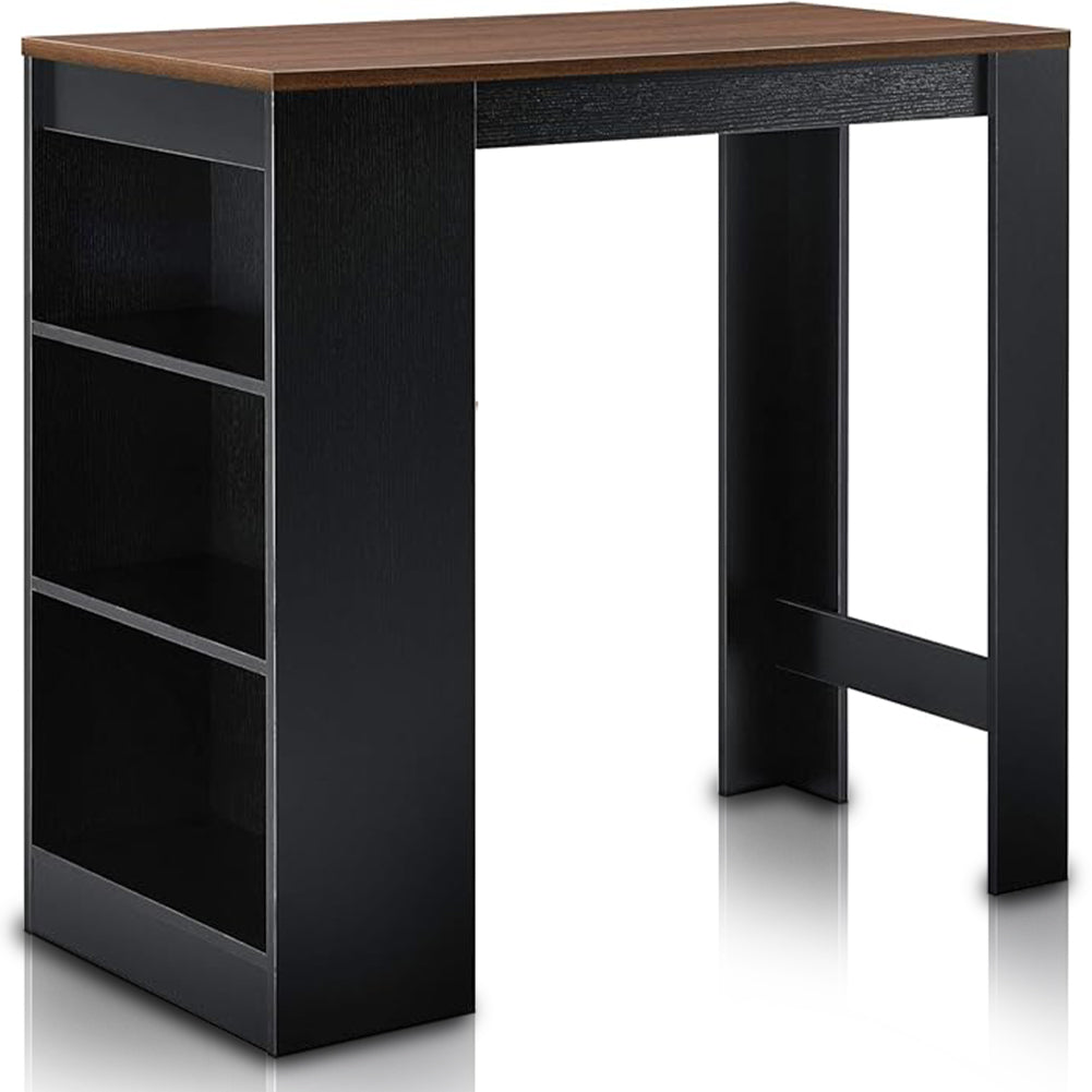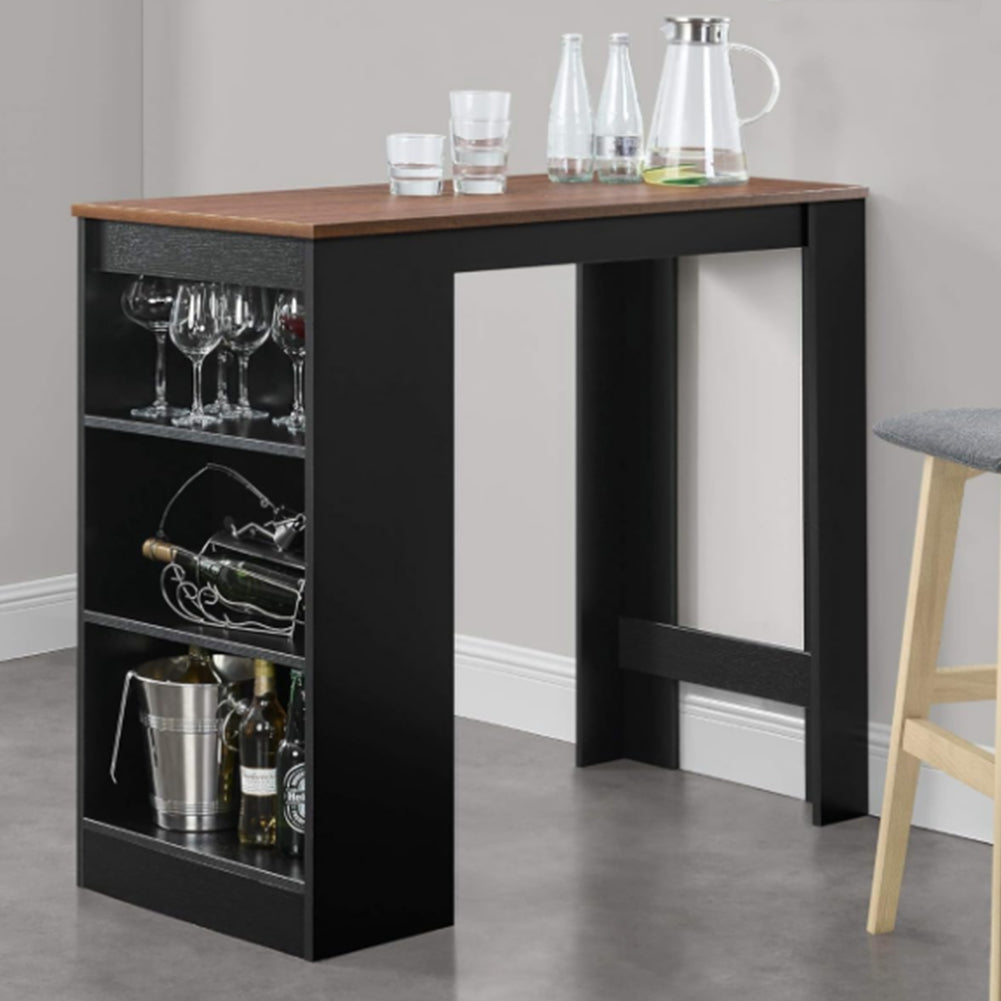 1 x Consolle Tavolo Alto da Bar 3 Ripiani Tavolino Nero e Noce Penisola Cucina