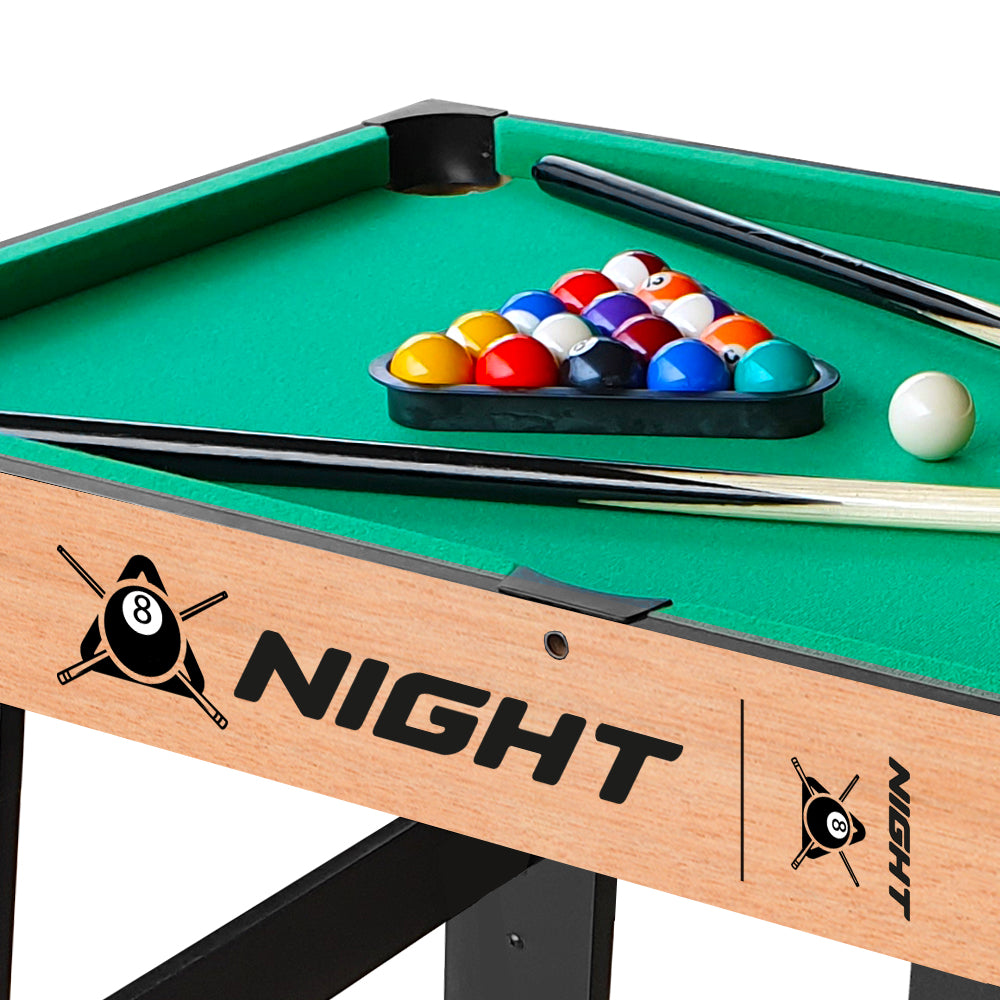 - Il tavolo da biliardo è pieghevole e salvaspazio, con dimensioni di 122x61x76 cm