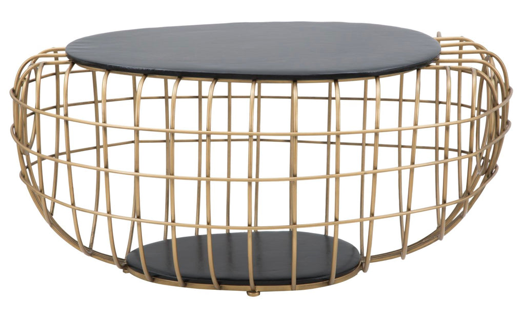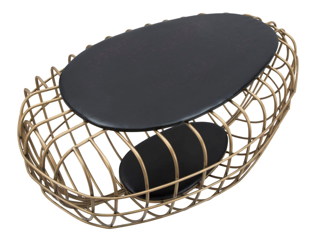 Tavolo da Caffé Oro Spider 119x75x55 cm in Ferro e MDF e PU Nero e Oro