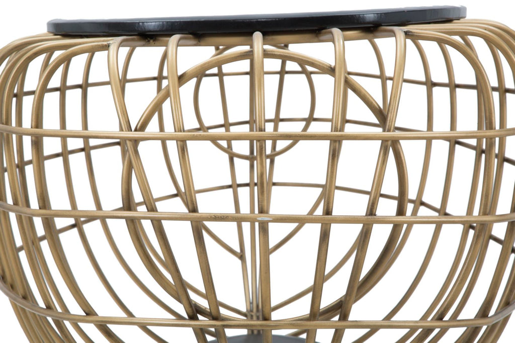 Splendido tavolinetto con piano in ecopelle e finiture in ferro dorato. Un elemento elegante ed originale per la sala da pranzo