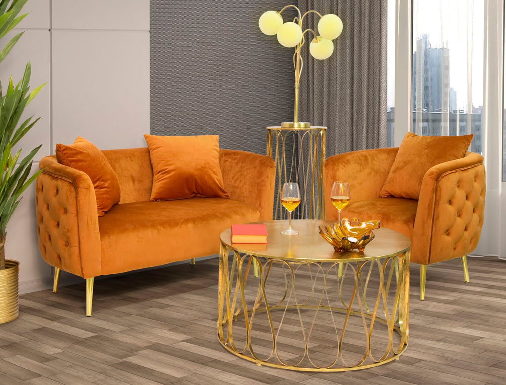 Tavolo da caffé rotondo in metallo. Finitura completamente dorata. La linea Venice è fatta apposta per Te, amante dello stile glamour!