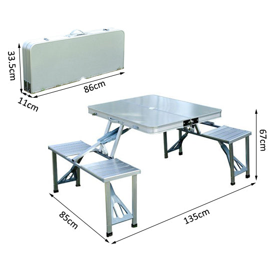 Pratico tavolo pieghevole in aluminio con 4 sedie, ideale per campeggio, pic-nic, spiaggia e giardino!
