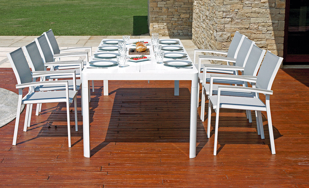 Tavolo da Giardino Allungabile 160/240x100x75 cm in Alluminio Bianco