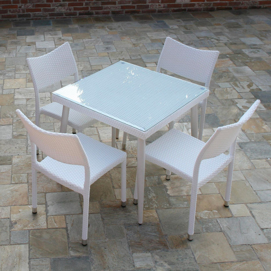 Tavolo da Giardino in Polyrattan con Vetro 90x90H77cm Adila Bianco Crema