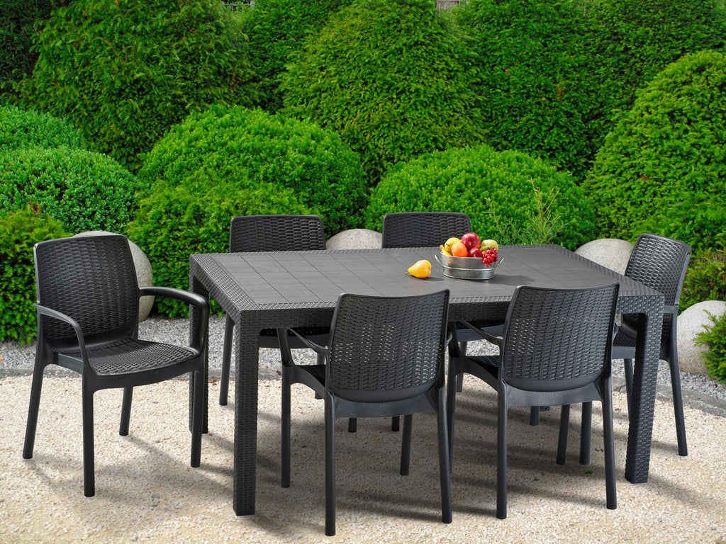 Tavolo da Giardino Keter Melody 160,5x94,5x74,5 cm Effetto Rattan e Legno Grafite