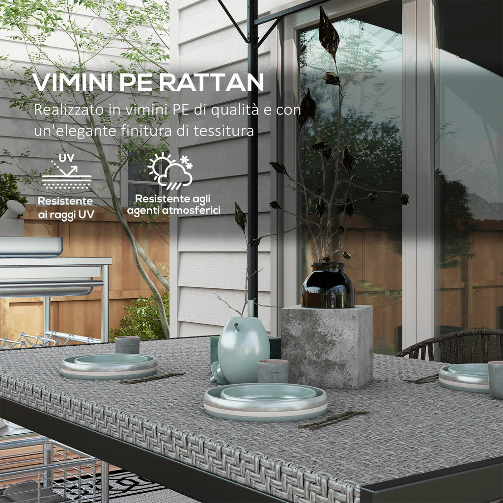 Tavolo da Giardino per 4 Persone con Struttura in Metallo 120x70x72 cm in Rattan PE Grigio