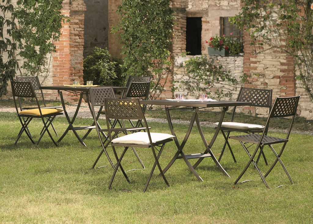 Tavolo pieghevole con struttura in acciaio pre-zincato e verniciatura poliestere color antracite.