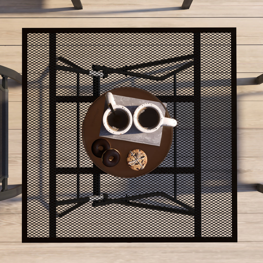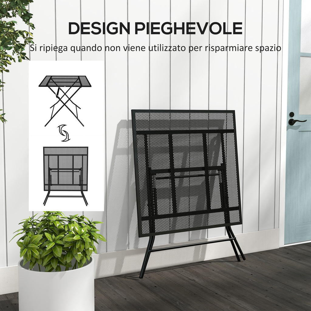 Tavolo da Giardino Pieghevole Quadrato 80x80x74 cm con Piano a Rete in Acciaio Nero