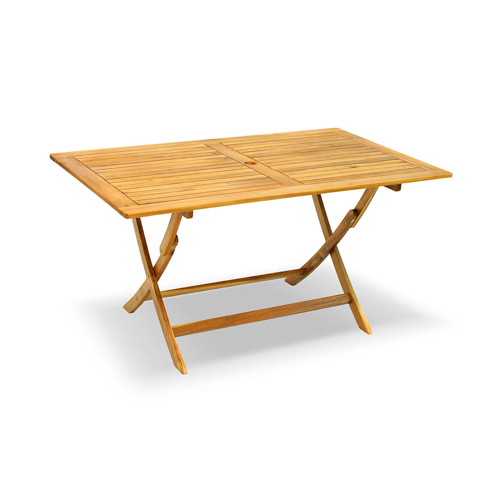 Tavolo rettangolare pieghevole, piano con foro per ombrellone, legno Acaciacm 150 X 80 X h 74